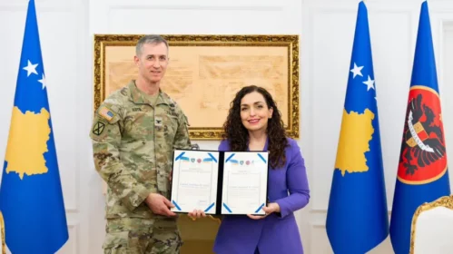 Presidentja e Republikës së Kosovës, Vjosa Osmani, priti dje në takim lamtumirës komandantin në largim të Komandës Rajonale Lindje të…