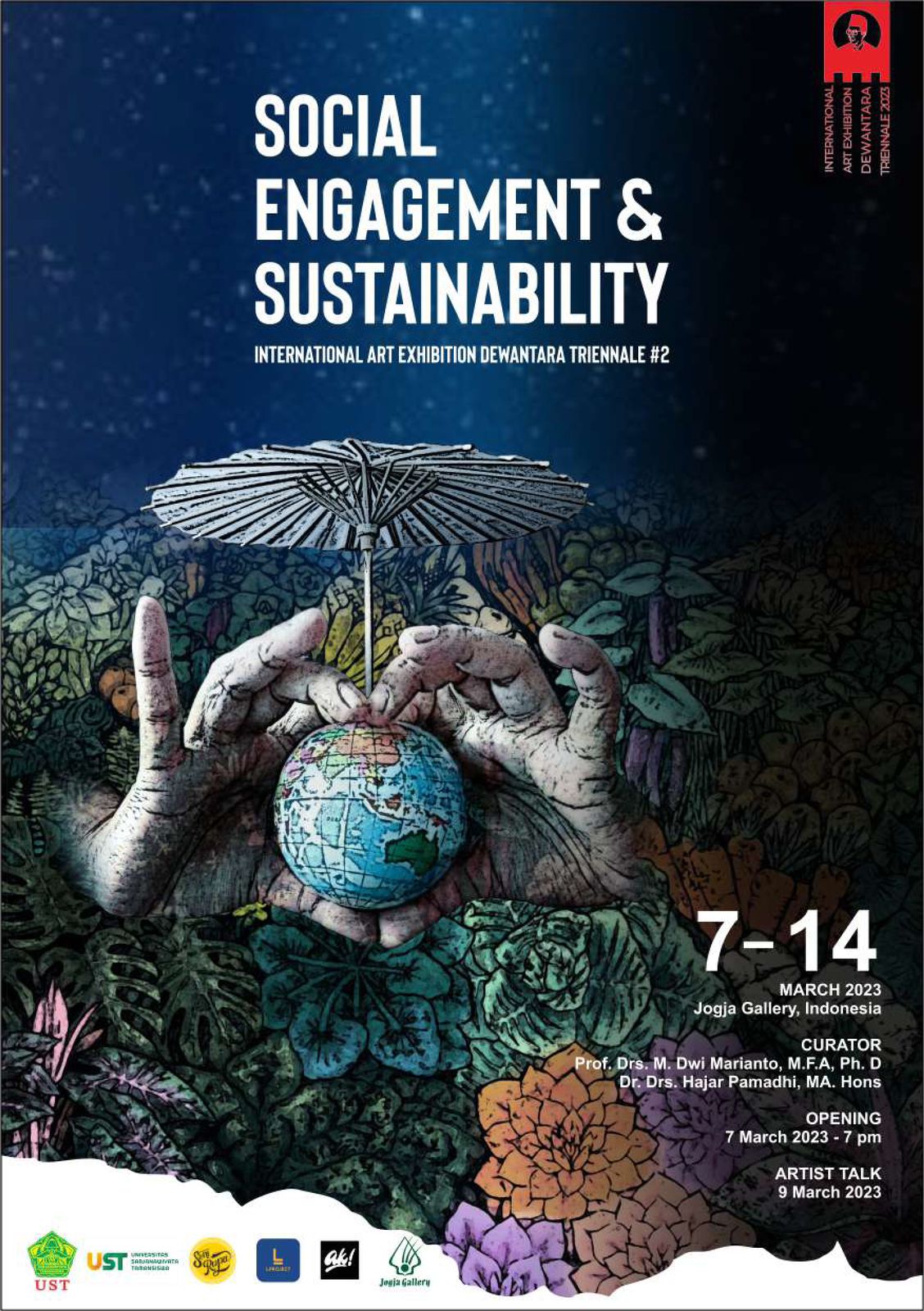 Kuratorët e këtij edicioni ishin dy nga personalitetet më të shquar të artit indonezian Prof. Ph.D. Martinus Dwi Marianto dhe Ph.D. Hajar Pamadhi, të cilët trajtuan temën e “Angazhimi Social & Qëndrueshmëria” (Social Engagement & Sustainability), ku unë u përfaqësova me veprën “Midis qiellit dhe tokës”.