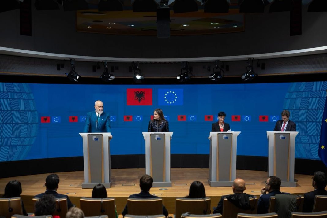 Pas mbajtjes së Konferencës së 7-të Ndërqeveritare Shqipëri-BE, kryeministri Edi Rama theksoi përparimin e vendit në rrugën drejt anëtarësimit në Bashkimin Europian dhe nënvizoi rëndësinë e përkushtimit dhe këmbënguljes për arritjen e këtij qëllimi historik.