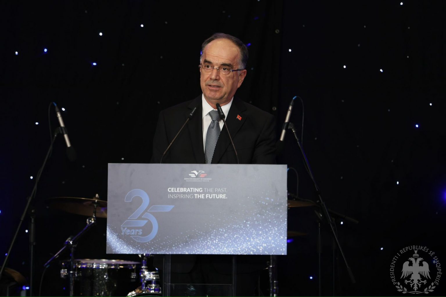 Presidenti Bajram Begaj mori pjesë sot në ceremoninë e 25-vjetorit të Dhomës Amerikane të Tregtisë në Shqipëri.