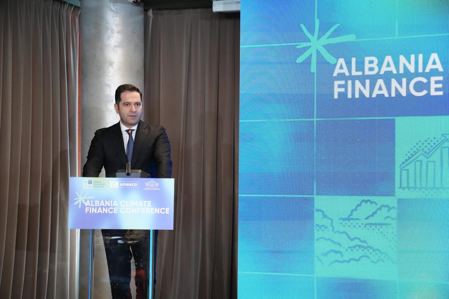 Ministri nënvizoi se stabiliteti ekonomik i vendit, rritja e PBB-së me rreth 4% në vitin 2025 dhe përmirësimi i vlerësimit të kreditit sovran nga agjencitë ndërkombëtare, janë tregues të qartë të besueshmërisë së Shqipërisë për menaxhimin e fondeve klimatike. Ai shtoi se kuadri fiskal i vendit ka mundësuar uljen e borxhit publik në rreth 53% të PBB-së, duke ruajtur hapësirën për investime strategjike në projekte klimatike.