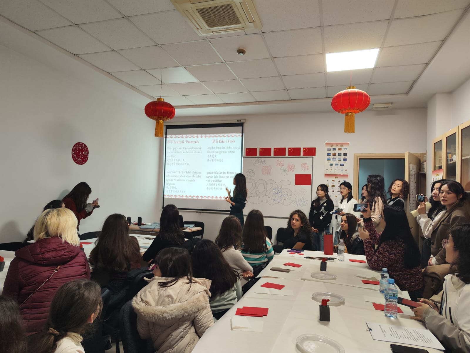 Në Institutin “Konfuci” të Universitetit të Tiranës u zhvillua një veprimtari për Festën e Pranverës, Viti i Ri Kinez. Studentë kinezë të Universitetit të Gjuhëve të Huaja të Pekinit prezantuan nëpërmjet videove traditën e lashtë të Vitit të Ri Kinez.