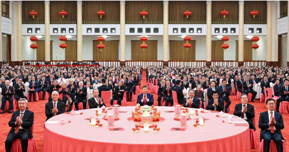 Në pritjen e organizuar në Pallatin e Madh të Popullit, kreu i shtetit e përshkroi vitin që po mbyllet si “i jashtëzakonshëm”, duke thënë se pavarësisht vështirësive dhe mjedisit kompleks dhe të paqëndrueshëm brenda dhe jashtë vendit, Kina prapë bëri përparime, duke vënë në jetë objektivat kryesore vjetore të zhvillimit ekonomiko-shoqëror dhe duke ngritur aftësitë ekonomike, tekniko-shkencore, të mbrojtjes kombëtare dhe të fuqisë së përgjithshme në një nivel të ri.
