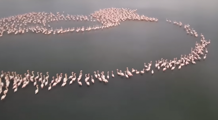 Flamingot “pushtojnë” Zvërnecin, spektakël në Lagunën e Nartës