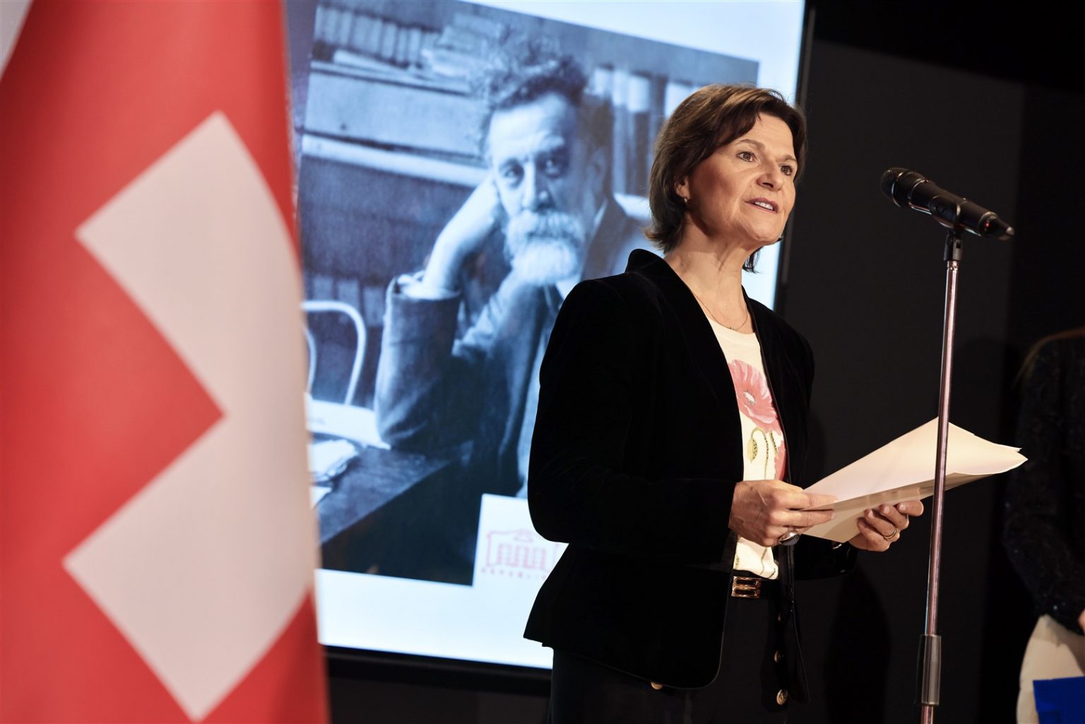 “Unë jam krenare që prezantoj këtë ekspozitë dhe krenare që një bashkëqytetar zviceran kontribuoi kaq thellësisht për mirëkuptimin, dukshmërinë dhe dinjitetin e Shqipërisë në një moment kur vëmendja ndërkombëtare kishte vërtet rëndësi”, tha ambasadorja zvicerane Ruth Huber në hapje.