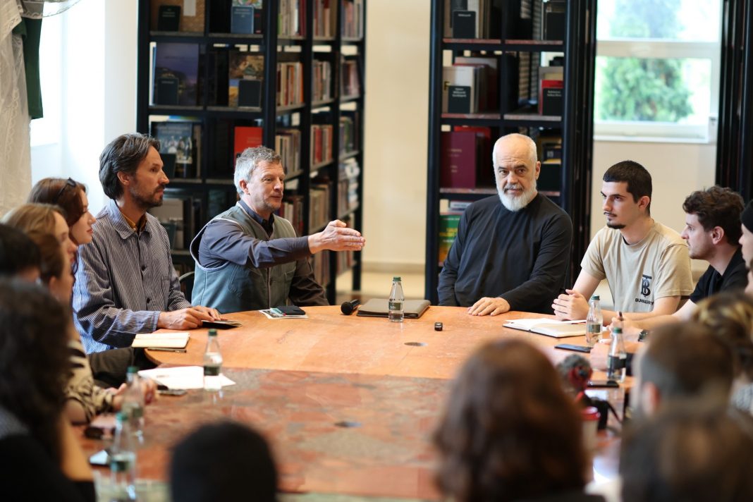 Me piktorin Anri Sala në përurimin e ekspozitës së tij nç New Museum në Manhattan, Nju Jork.