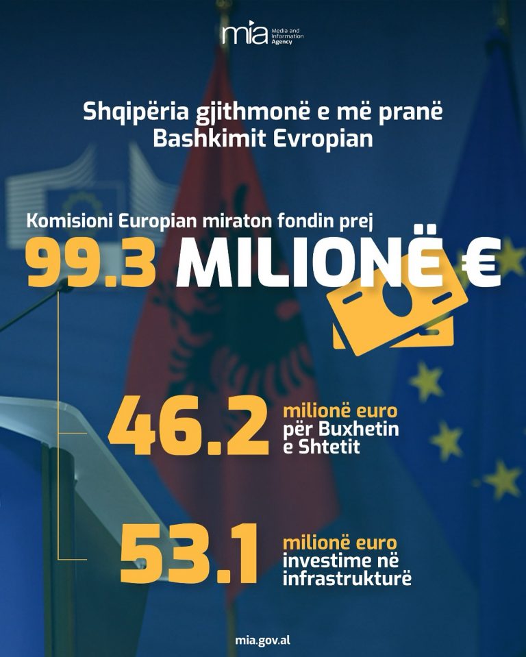 Komisioni Europian ka miratuar fondet për Shqipërinë në kuadër të Planit të Rritjes për Ballkanin Perëndimor, duke i alokuar vendit tonë një shumë prej 99,3 milionë eurosh.