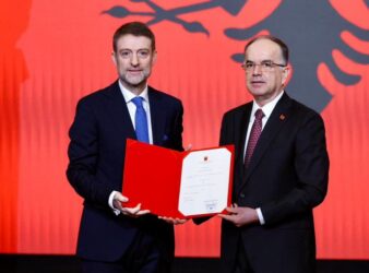 Ministri i ri për Evropën dhe Punët e Jashtme, Ferit Hoxha u betua sot para Presidentit të Republikës, Bajram Begaj, në një ceremoni të posaçme të zhvilluar në Pallatin e Brigadave.