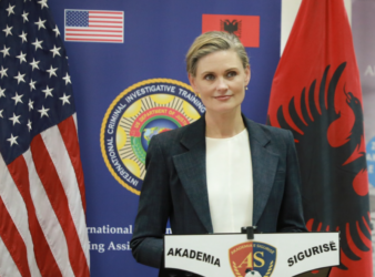 E ngarkuara me punë e Shteteve të Bashkuara të Amerikës në Tiranë, Nancy VanHorn, mori sot pjesë në përfundimin e trajnimit nga FBI të hetuesve të Byrosë Kombëtare të Hetimit (BKH) për Mbikëqyrjen e Analizës së Celularëve.