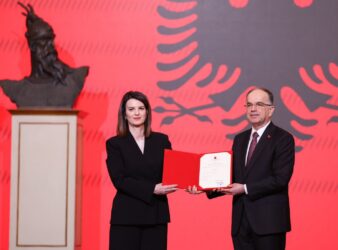 Zëvendëskryeministrja Albana Koçiu, u betua sot para presidentit Bajram Begaj, në një ceremoni të posaçme të zhvilluar në Pallatin e Brigadave.