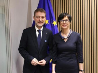Ministri për Evropën dhe Punët e Jashtme, Ferit Hoxha, në vijim të vizitës së parë zyrtare në Bruksel në cilësinë e kreut të diplomacisë shqiptare u takua me Komisioneren për Zgjerimin, Marta Kos.