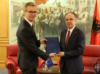 Presidenti i Republikës, Bajram Begaj, priti sot në një takim ambasadorin e Bashkimit Evropian në Shqipëri, Silvio Gonzato, i cili i dorëzoi Raportin Vjetor të Komisionit Evropian për Shqipërinë, pjesë e Paketës së Zgjerimit 2025.