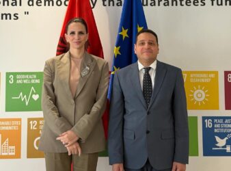 Ministri për Evropën dhe Punët e Jashtme, Ferit Hoxha zhvilloi një takim pune me të Ngarkuarën me Punë të Shteteve të Bashkuara të Amerikës në Shqipëri, Nancy VanHorn.