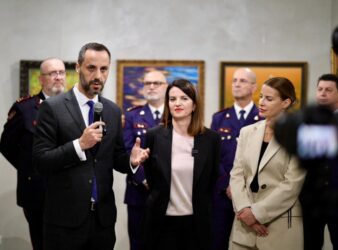 Zëvendëskryeministrja Albana Koçiu dhe ministri i Brendshëm, Besfort Lamallari morën pjesë në hapjen e ekspozitës “Publik Galeri”, një nismë që synon transformimin e hapësirave të konfiskuara në qendra arti dhe jete komunitare.