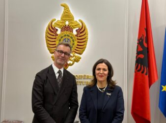 Ambasadori i Bashkimit Evropian në Shqipëri, Silvio Gonzato, ka takuar sot kryetaren e re të Gjykatës Kushtetuese, Fiona Papajorgji.