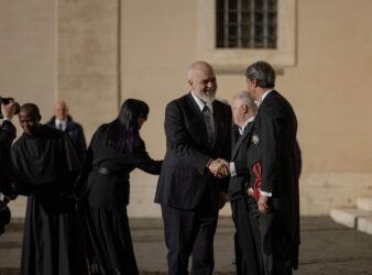 Kryeministri Edi Rama, i shoqëruar nga bashkëshortja Linda dhe djali Zaho zhvilluan sot homazhe në varrin e papa Françeskut në Vatikan.