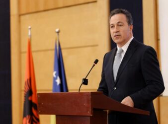 Kryetari i Kuvendit, Niko Peleshi mori pjesë në pritjen solemne me rastin e 18-vjetorit të Ditës së Pavarësisë së Republikës së Kosovës
