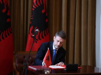 Ministri i ri për Evropën dhe Punët e Jashtme, Ferit Hoxha u betua sot para Presidentit të Republikës, Bajram Begaj, në një ceremoni të posaçme të zhvilluar në Pallatin e Brigadave.
